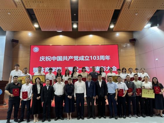 在国际学术讲堂隆重召开庆祝中国共产党成立103周年暨2024年“两优一先”表彰大会。学院领导、全体党员参加了大会。大会由党委副书记兼副院长苑锐主持。
