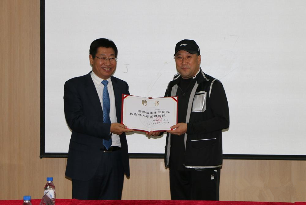 兼职教授聘任仪式,决定聘任国家体育总局乒羽中心副主任、中国羽毛球队总教练李永波为兼职教授。学校党委副书记冯正玉、人力资源与社会保障处处长顾旭东、学生工作部部长周春国、人才工作办公室副主任贾丽华以及141JAV