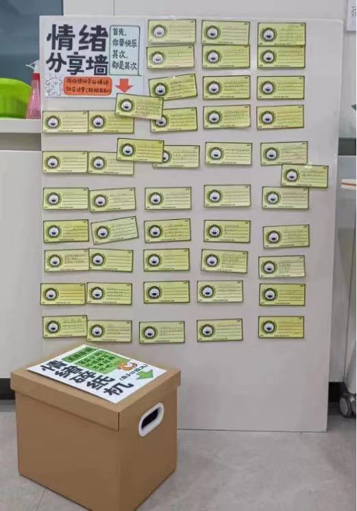 身体的健康在于运动,心理的健康在于倾诉,情绪分享墙和情绪碎纸机中凝聚着同学们不同的情绪,有的同学分享了自己通过考试的喜悦之情,有的同学分享了开心的过往,有的同学在期待着未来的美好,当然也有同学也倾诉了自己的烦恼。当快乐被分享,同样的愉悦就会被无限放大 ;当烦恼被雪藏,心中的繁重也会被一点一点地释放。
