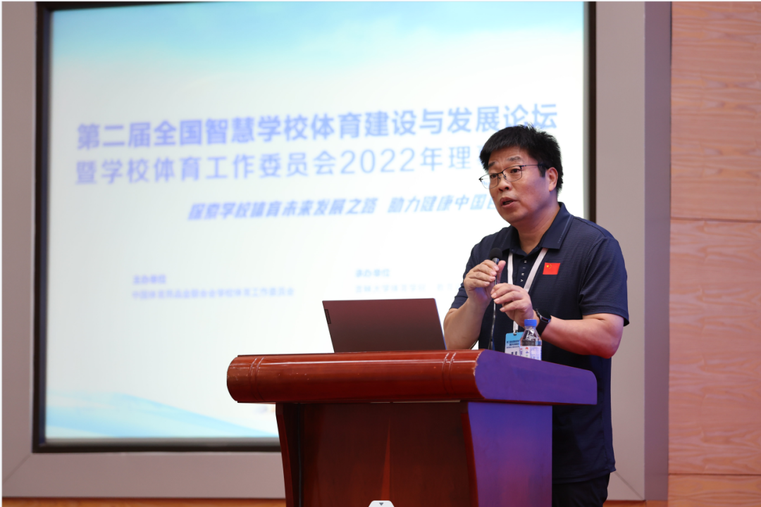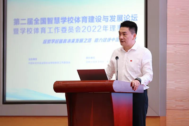 岳贤锋院长在会上也作了发言。他向参会代表介绍了学校体育建设的基本情况,并表示对承办好下一届全国智慧学校体育建设与发展论坛充满信心。