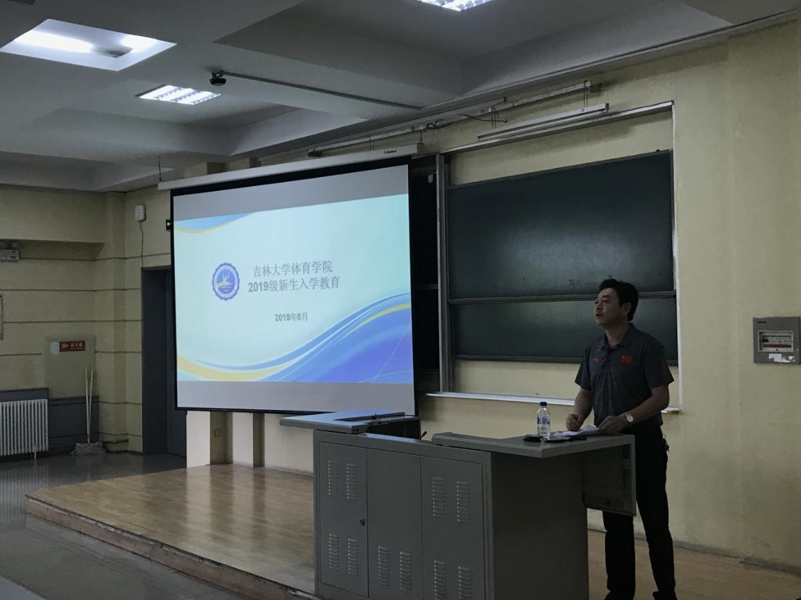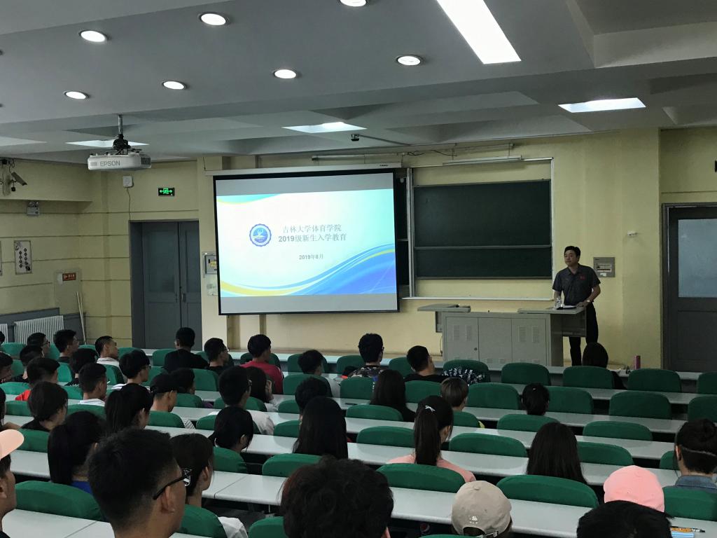 在逸夫教学楼第三阶梯教室召开新生入学专题教育。学生工作办公室主任王赫谊、2019级辅导员宫勖能及2019级全体新生参加本次活动。党委副书记兼副院长田进参加大会并讲话。