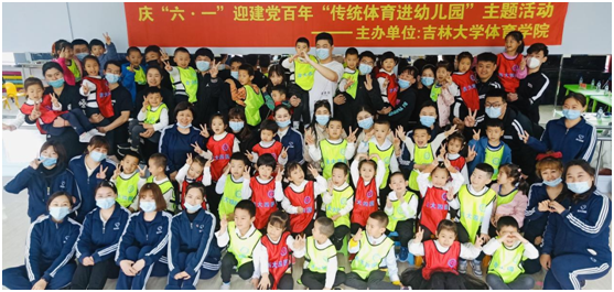 第四幼儿园,与吉大四园园长张玲、副园长李立宏、副园长徐莹及菠萝一班全体幼儿共同开展庆“六·一”迎建党百年“传统体育进幼儿园”主题活动。