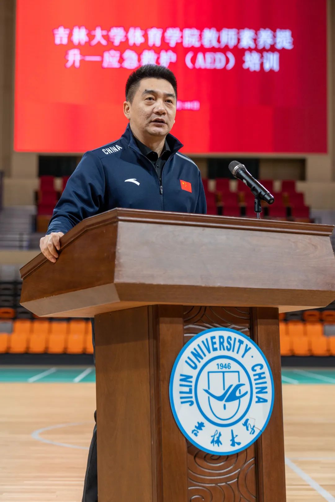 院长裘鹏教授对这次培训做了动员讲话。首先,对疫情防控期间为保障学校体育工作的有序开展,全院教职人员付出的辛苦努力以及取得的良好评价做出了充分肯定。其次,裘鹏强调,新学期伊始,学院要时刻把学生的生命安全放在第一位,关心、关注学生的身心健康。做到开课前要详细了解学生的身体状态,在运动中要时刻观察学生反应,因材施教,给予学生科学的运动健身指导。本次培训的目的在于提高学院教职人员运动风险的应急处理能力,为学生的身体健康保驾护航。希望老师们认真学习,掌握心肺复苏的正确方法。最后,裘鹏提出新学期学校体育工作要围绕培养学生的身体健康、心理健康、社会适应能力、道德修养四个重要维度展开,更好地发挥体育的育人功能。