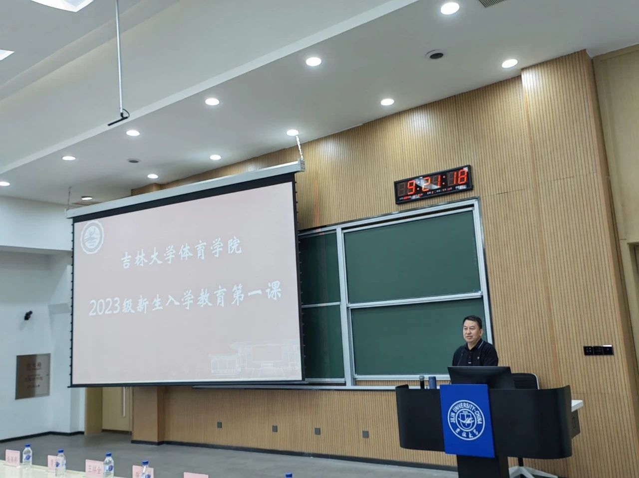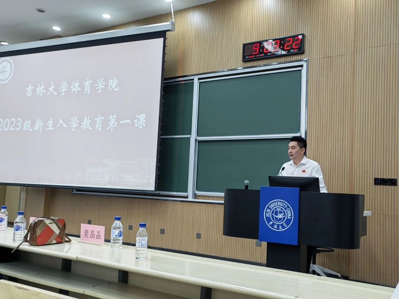 的校史以及学校的发展历程,希望新生们要建立文化自信、制度自信、民族自信、提升政治眼界,努力成人、成才、成为国之栋梁。接着,逄锦彩书记寄语新生,党的二十大已经胜利召开,同学们是强国的一代,要全过程参与强国建设,要担负起中国体育未来的使命,希望同学们积极响应时代召唤,积极践行“强国先强身、吉大作先锋”,投身强国建设,为全面建设社会主义现代化国家贡献青春力量。