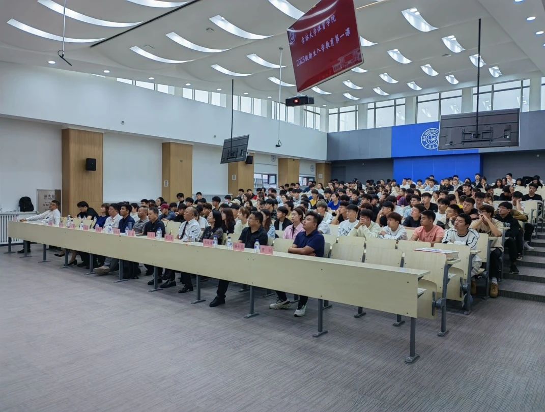在中心校区逸夫楼第15阶梯教室开展新生入学教育第一课,学院全体领导班子、部分教师代表及全体2023级新生参加。会议由党委副书记兼副院长苑锐主持。