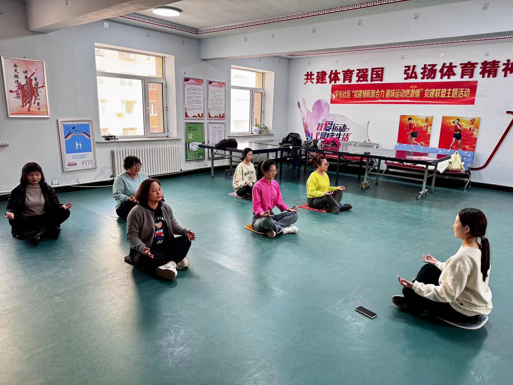 为推广全民健身运动,丰富社区居民的文化生活,近日,在长春市朝阳区宇光社区,居民们迎来了由141JAV 社区体育指导队组织的瑜伽教学活动。