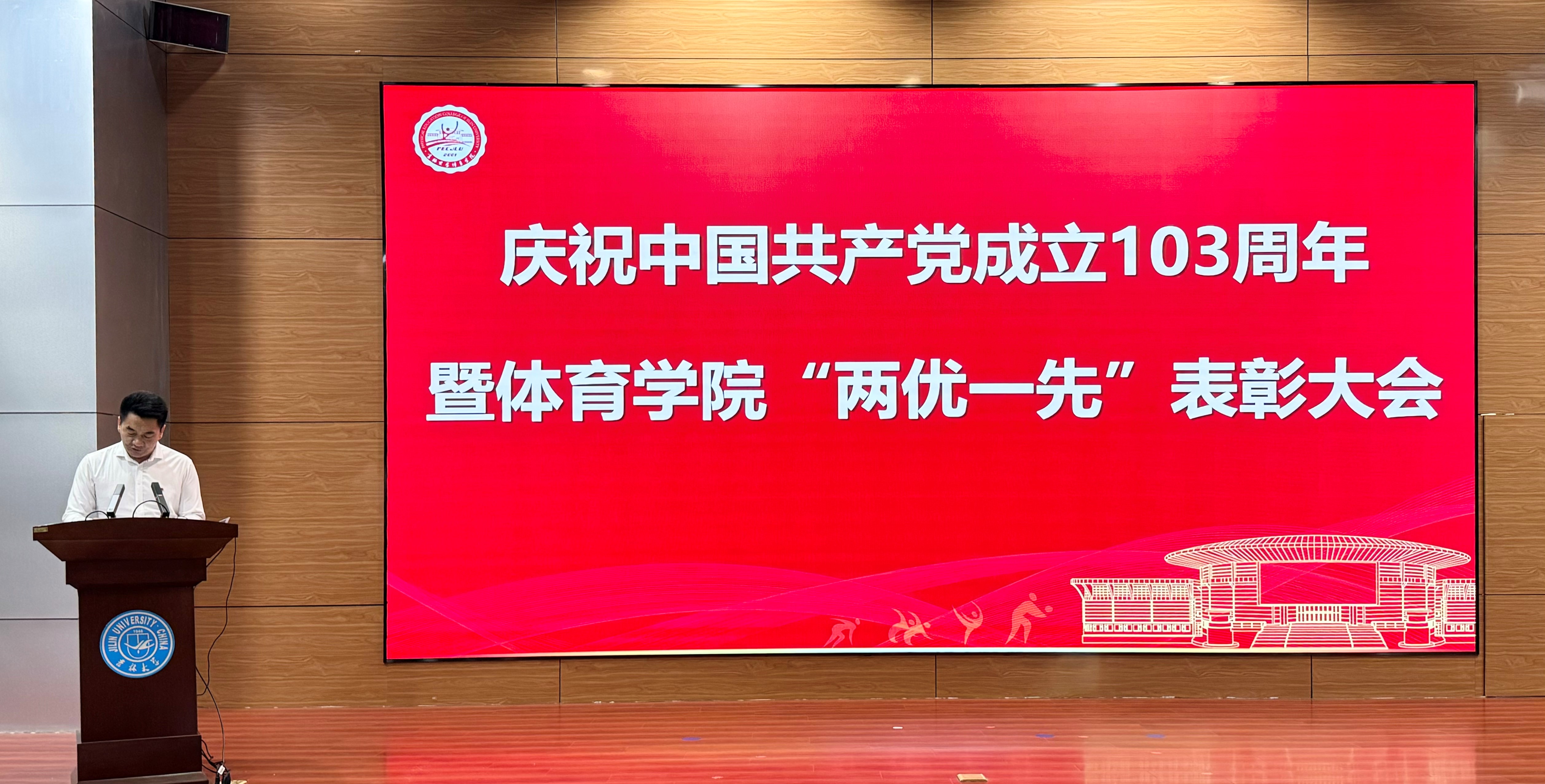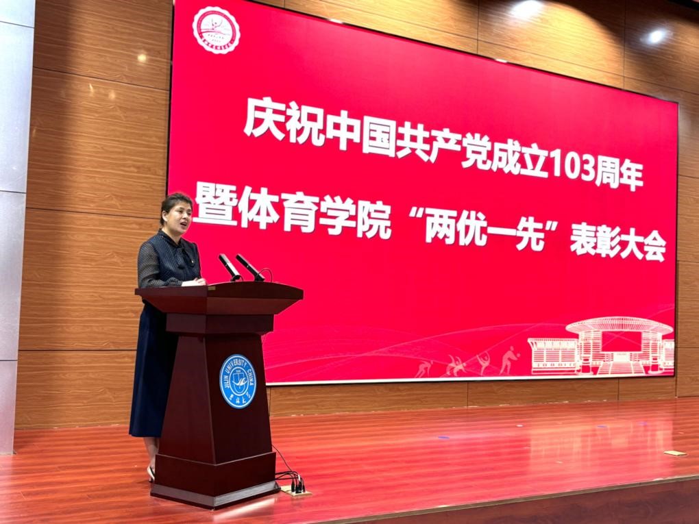 在国际学术讲堂隆重召开庆祝中国共产党成立103周年暨2024年“两优一先”表彰大会。学院领导、全体党员参加了大会。大会由党委副书记兼副院长苑锐主持。