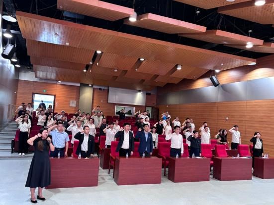 最后,学院党办主任张婷带领全体党员重温了入党誓词。大会在《国际歌》中圆满结束。
