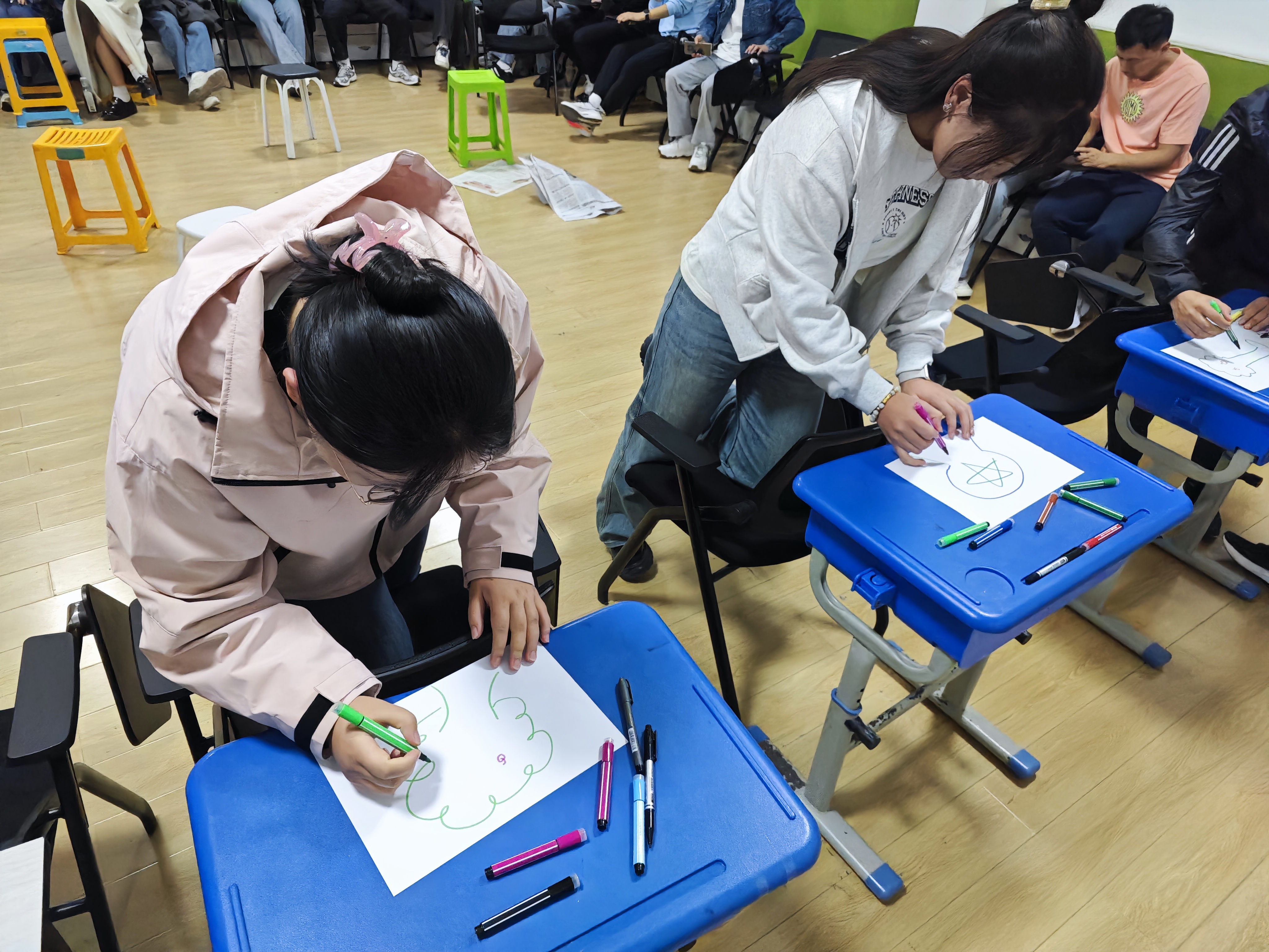 活动渐近尾声,最后一个环节是“绘制团体树“。同学们你一笔,我一画,共同绘制出一棵代表自己小组的“团体树”。不同的“团体树”各有特点,但都体现出了同学们的特点、愿景以及彼此的紧密联系。