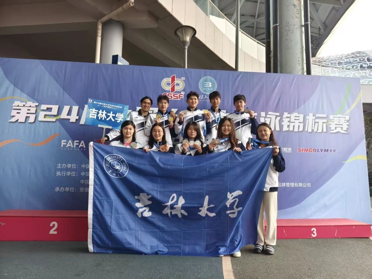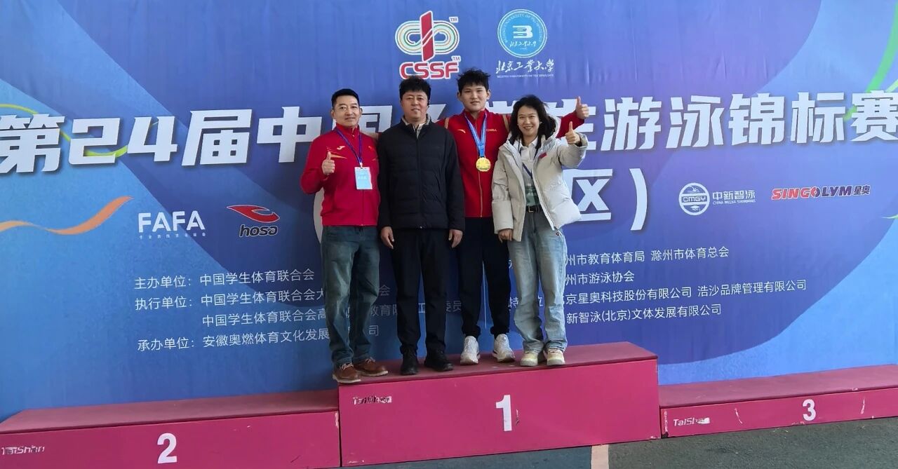 2025年12月5日,第24届中国大学生游泳锦标赛(北方赛区)在安徽滁州奥体中心开赛。此次赛事是由"中国学生体育联合会"主办,"中国学生体育联合会大学游泳分会"执行,"安徽奥燃体育文化发展有限公司"承办。来自长江以北114所高校1023名运动员参加,这是国内高校泳坛最高规格的赛事之一。我校10名运动员参赛,全部晋级八强,其中9名队员获得奖牌,以3金10银3铜的表现创造141JAV