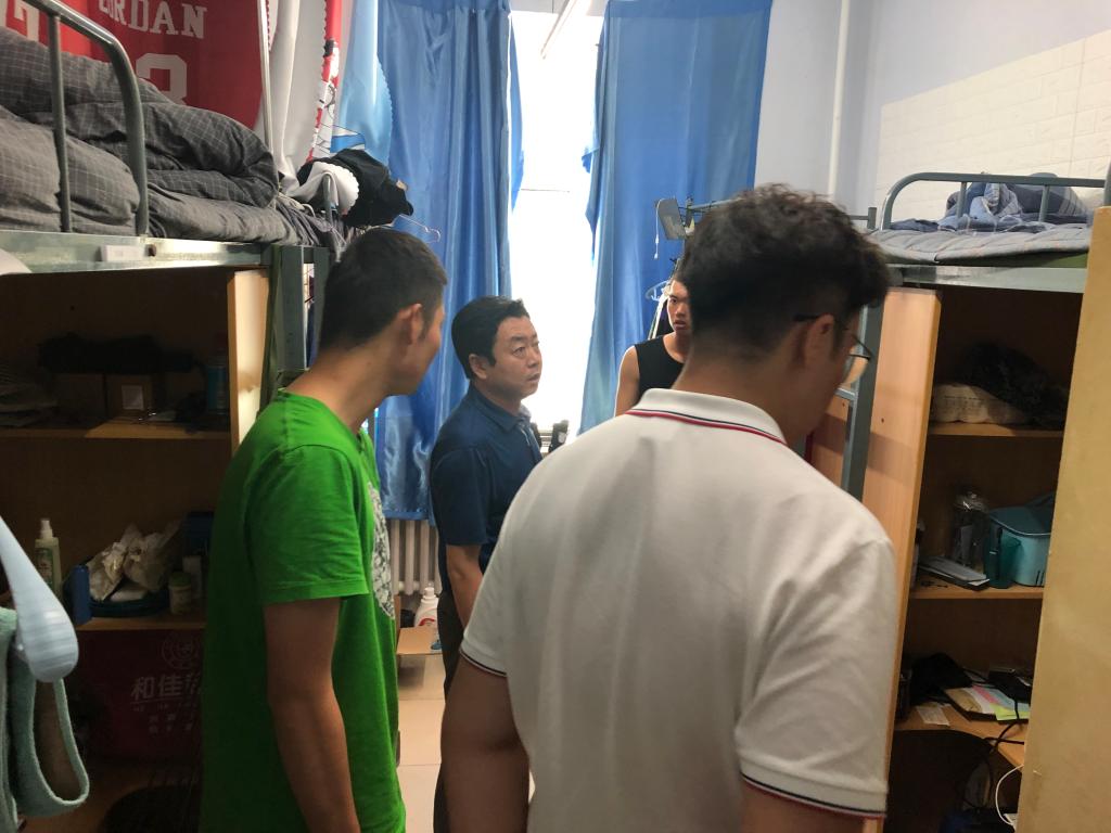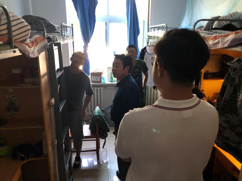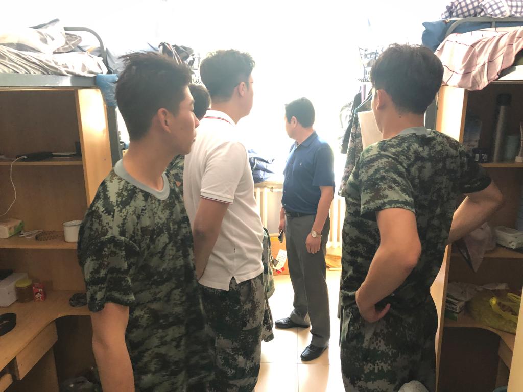 党委副书记兼副院长田进、辅导员宫勖能及部分学生干部在军训期间走访检查了新生寝室。
