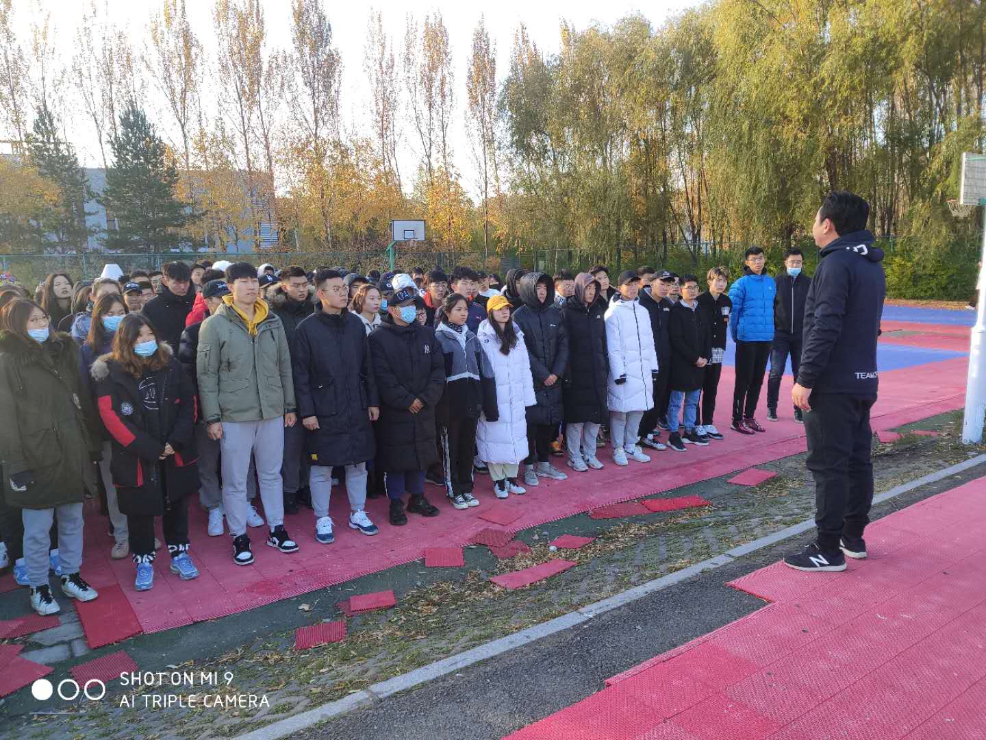 学院分管领导及辅导员每天亲临现场和同学们一起活动,期间,田进副书记进一步强调了早操的目的和意义,并提出了相关要求,要从出勤情况、队列整齐度、口号嘹亮度、精神面貌等方面做好考核,阶段性评选早操先进班级,并以颁发流动红旗的方式进行表彰奖励。