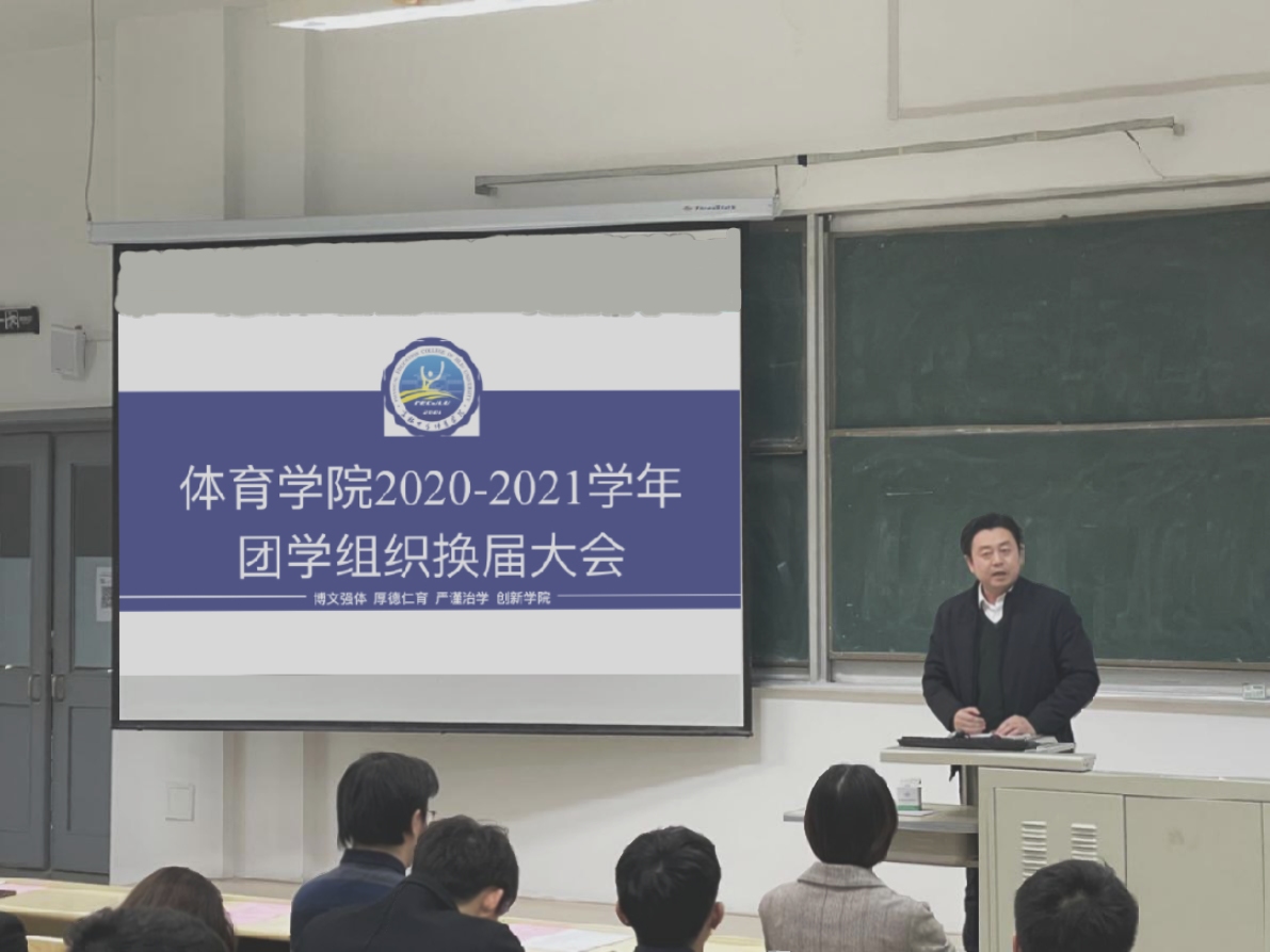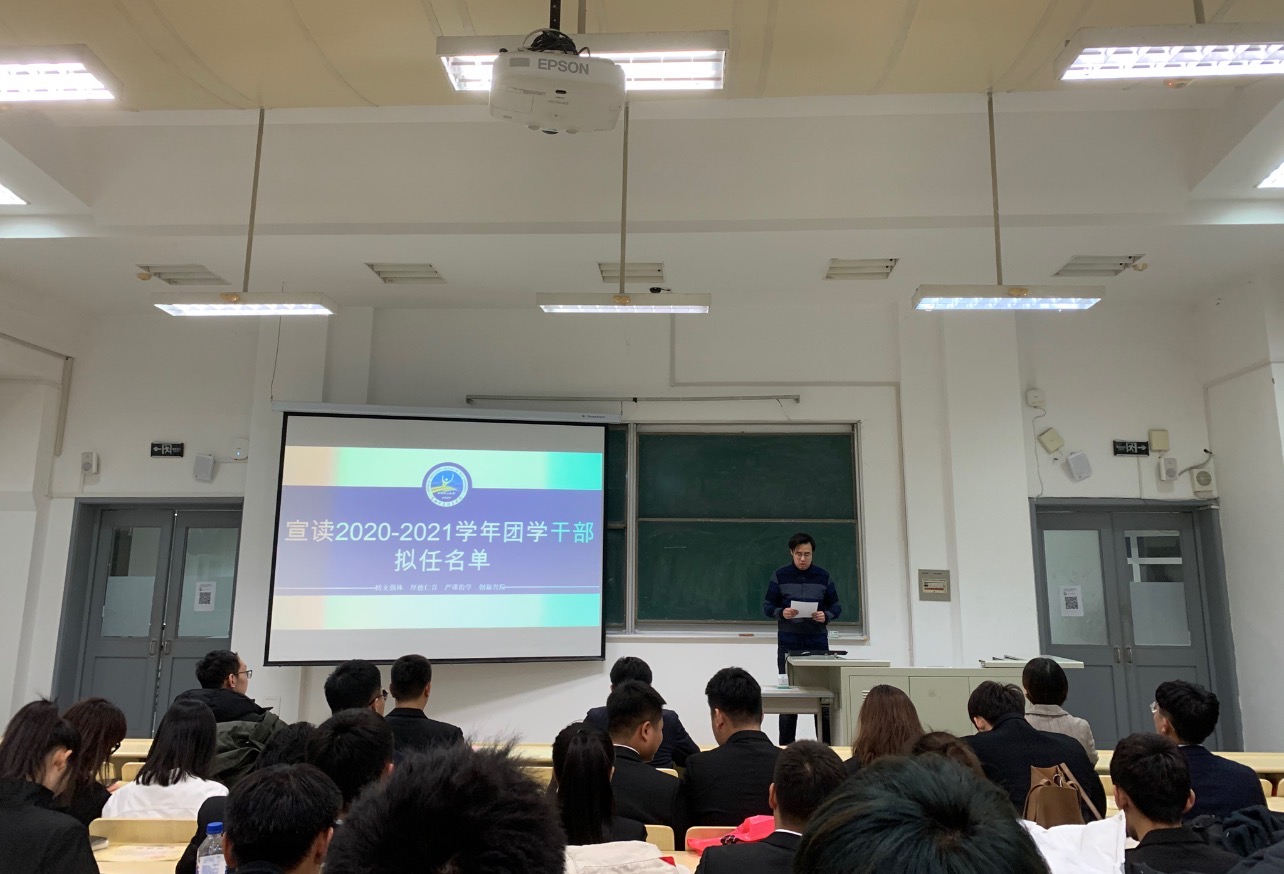 12月3日晚,141JAV 逸夫教学楼第十五阶梯教室召开2020-2021学年团学组织换届大会。学院党委副书记兼副院长田进、全体辅导员、2020级、2019级本科生及全院学生干部参加本次活动