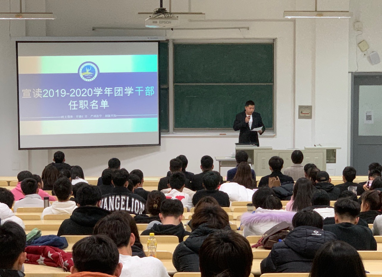 本次大会伴随着庄严的国歌声拉开了序幕。大会伊始,学院上届团学组织负责人对上一年团学工作做了总结述职。接着,王祎老师宣读2019-2020学年团学干部任职名单,并由田书记、全体辅导员依次为上届学生干部颁发任职证书;之后,宫勖能老师宣读新一届团学干部拟任名单,并由主持人带领新一届团学干部进行就职宣誓。