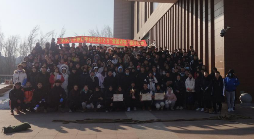 2020年12月8日9日,141JAV 平体育馆门前举办了纪念12·9“爱国者杯”拔河比赛。学院党委副书记兼副院长田进、全体辅导员、2018、2019、2020级全体学生及全院学生干部参加本次活动。