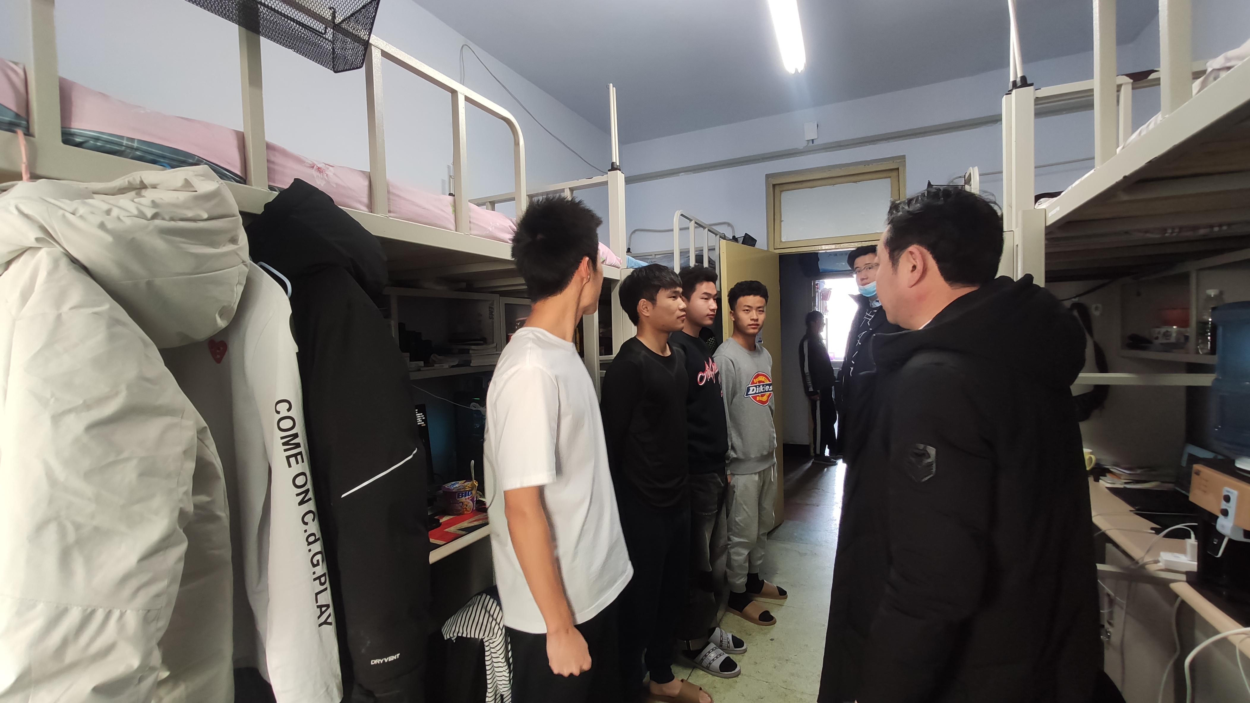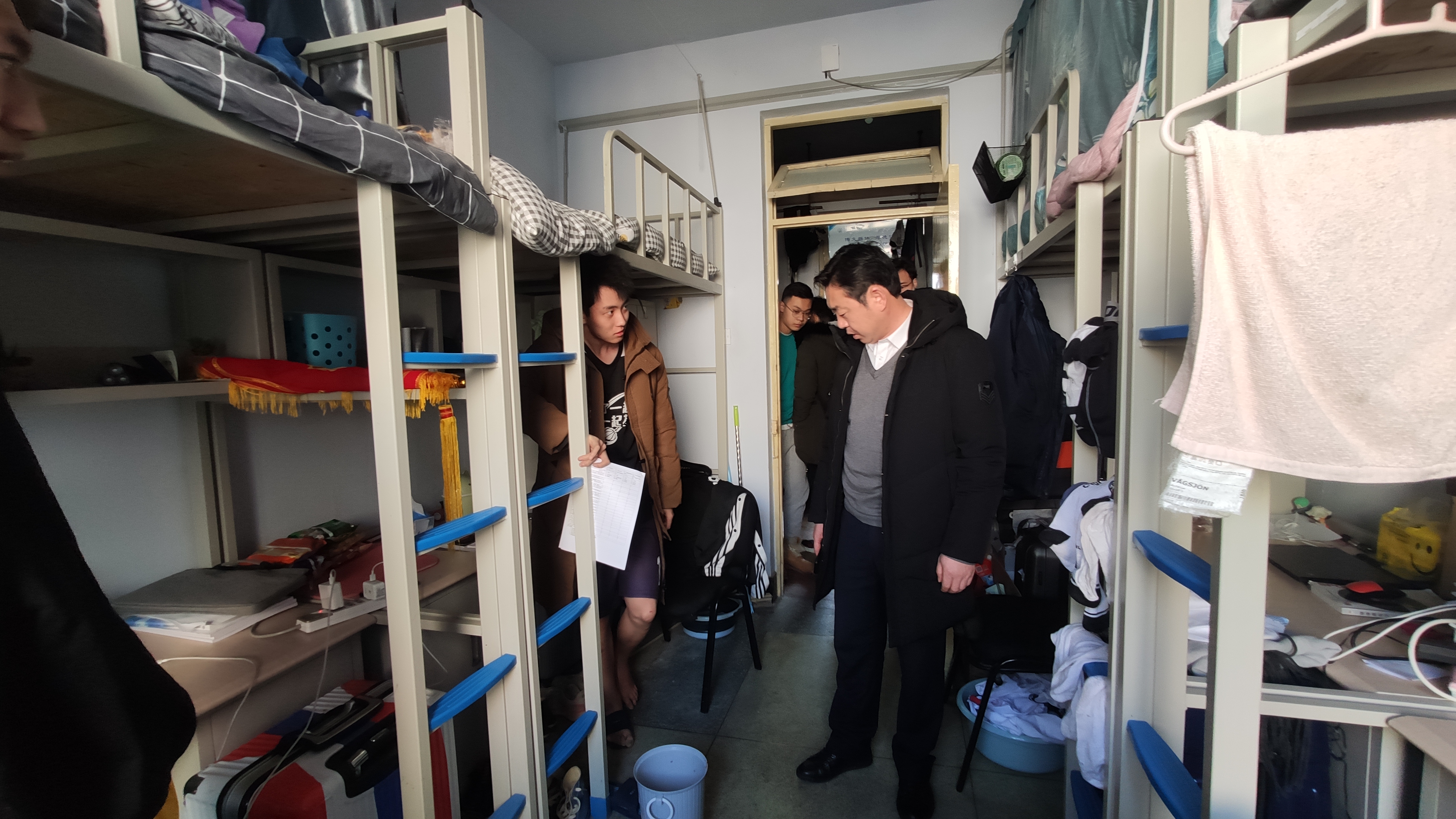 党委副书记兼副院长田进和全体辅导员带领学院生活管理委员会学生干部,对学院本科生寝室进行了走访和安全卫生大检查。