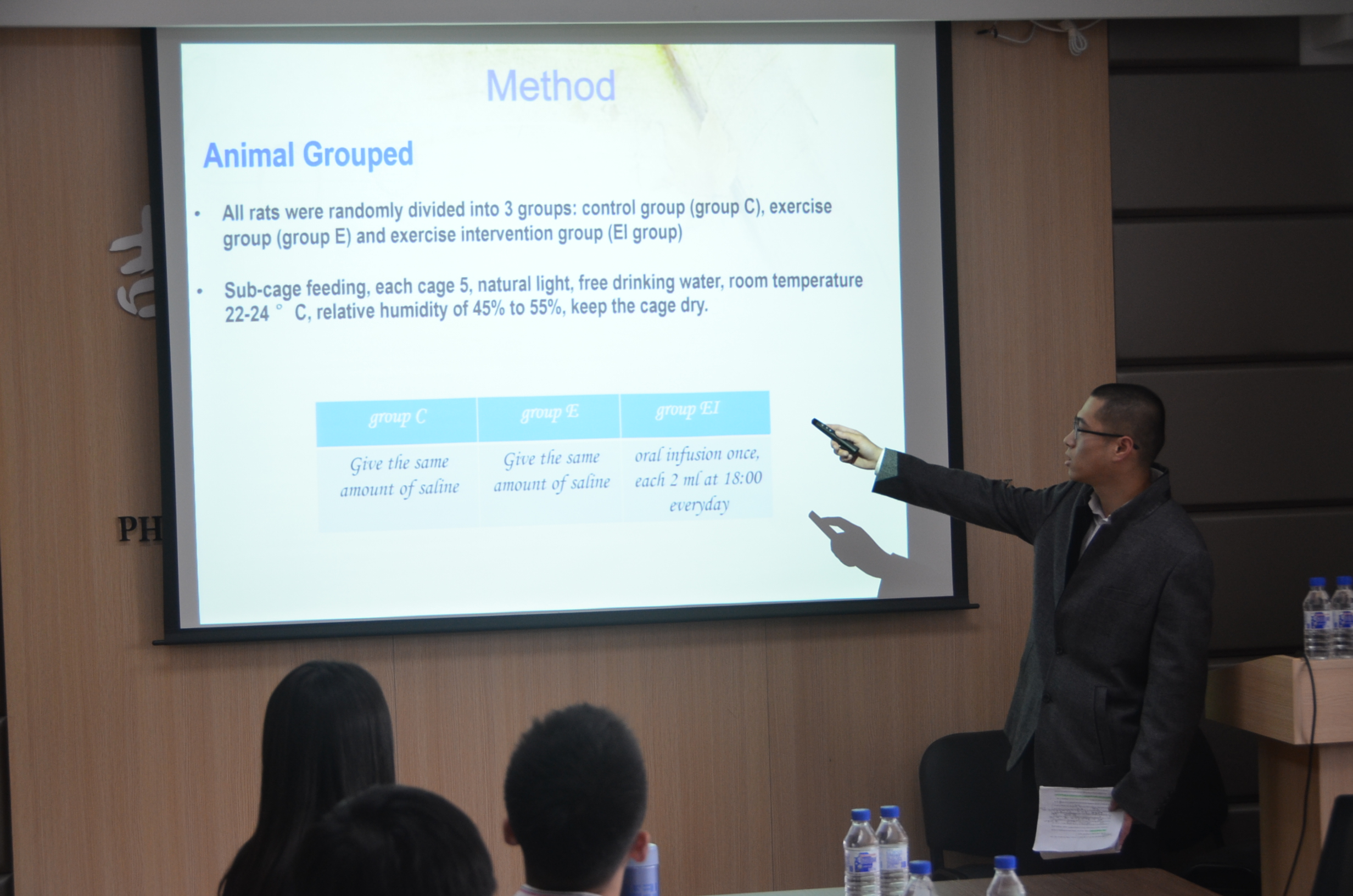 教科研办公室主任赵扬老师、专业课杨长明老师及全体运动人体科学专业的硕士研究生参加了交流,会议由王超懿老师主持。