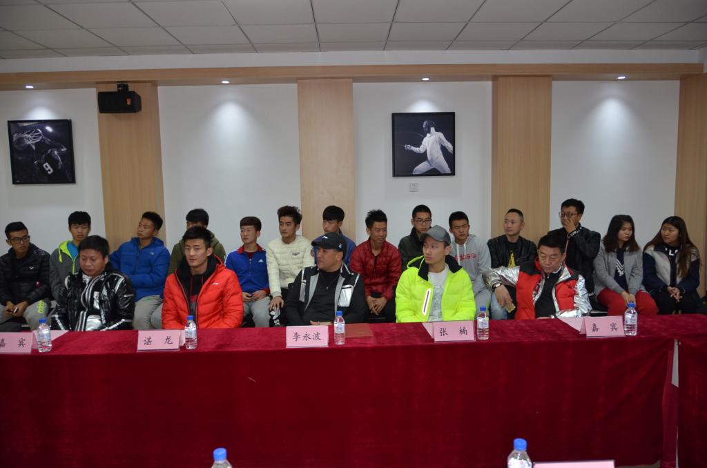 仪式结束后,与李永波同行来校的羽坛奥运冠军张楠、谌龙等与师生进行了交流互动。
