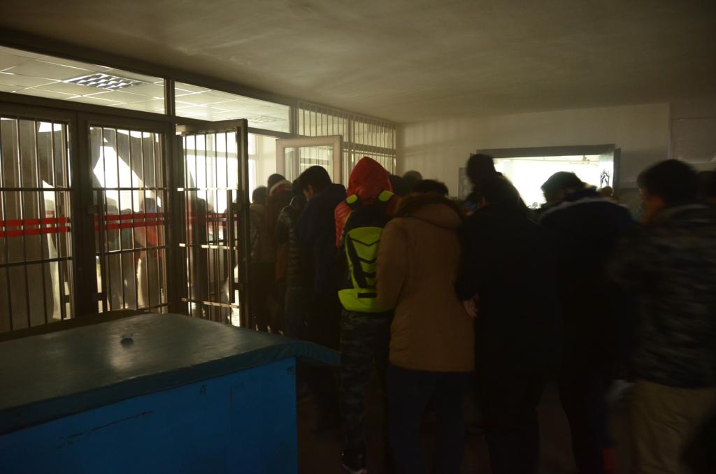 首先,保卫处消防科科长周中平在体育馆内向到场的同学、老师讲解了在遭遇火灾时紧急疏散的注意事项,并教给大家“捂鼻弯腰,有序迅速”的疏散口诀。随后,疏散演练开始,伴着事先预备好的烟雾,同学们在周科长的带领下按照捂鼻弯腰的姿势迅速从体育馆北门疏散到室外,整个过程有条不紊。