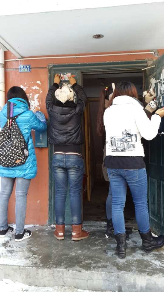 在清理过程中,同学们在保证不损坏墙壁的前提下用刀片和用手揭的方式,将墙上各种大小的小广告细心,耐心的清除了。逐一楼层,从上到下,不疏漏任何一个角落。每个人手中都分发了塑料袋。同学们在清理的过程中也一并将垃圾带走,保证了居民楼通道内的清洁卫生。虽然已经是严冬季节,可丝毫没有阻碍同学们劳动的热情。手拿着工具虽然冻手,但却坚持着将每一个广告彻底的清除。