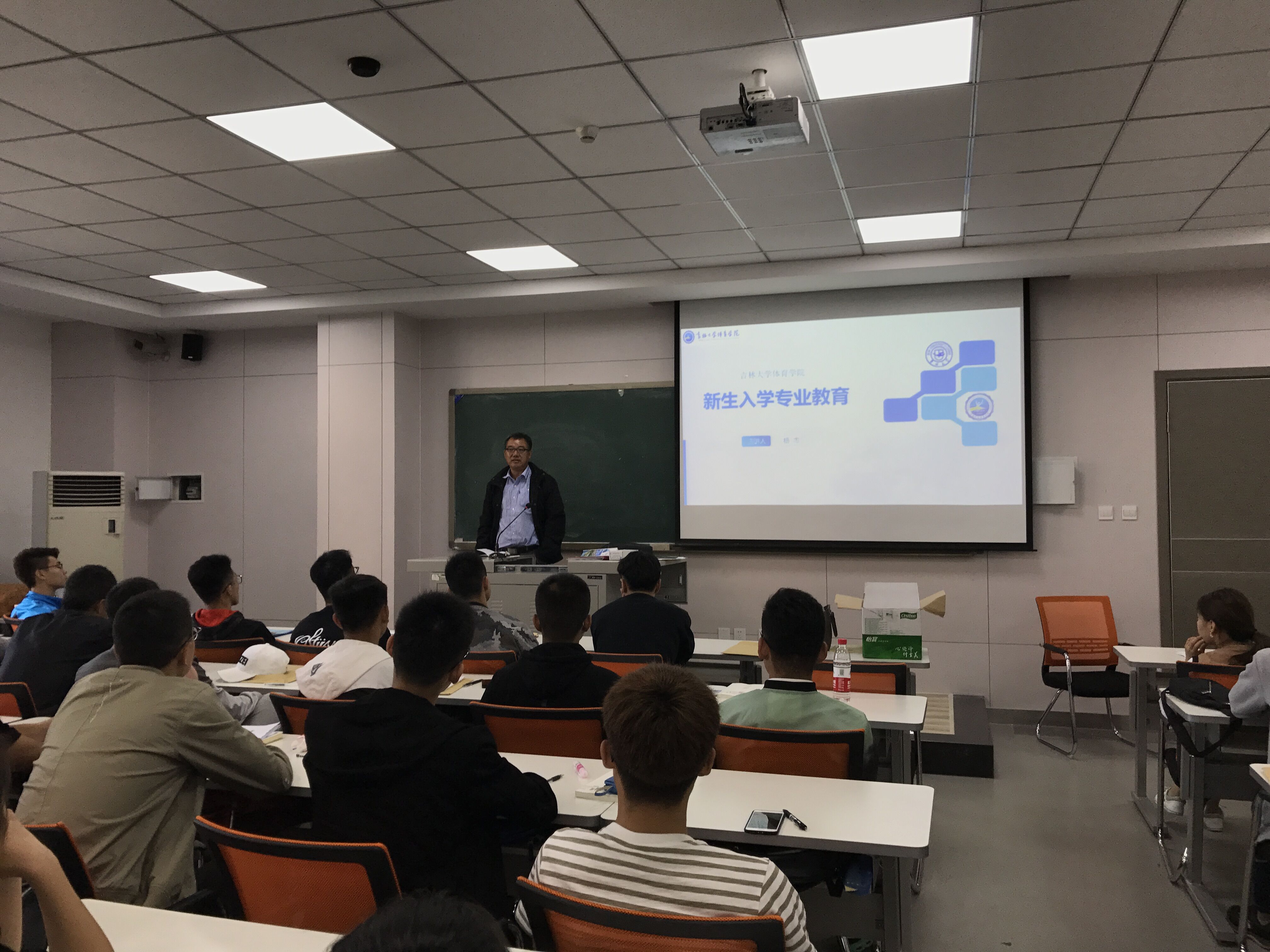 在新生入学专业教育会上,杨杰副院长首先为大家介绍了学院的总体情况,他从学院历史发展、学科建设、师资人员、专业设置、学科特色、人才培养、科研成果等方面进行了简要的介绍,他鼓励2017级新生“勤学成才”,力争用四年的勤奋努力和拼搏进取,力争取得优异成绩回报家庭和社会,努力为祖国的建设和发展贡献力量。